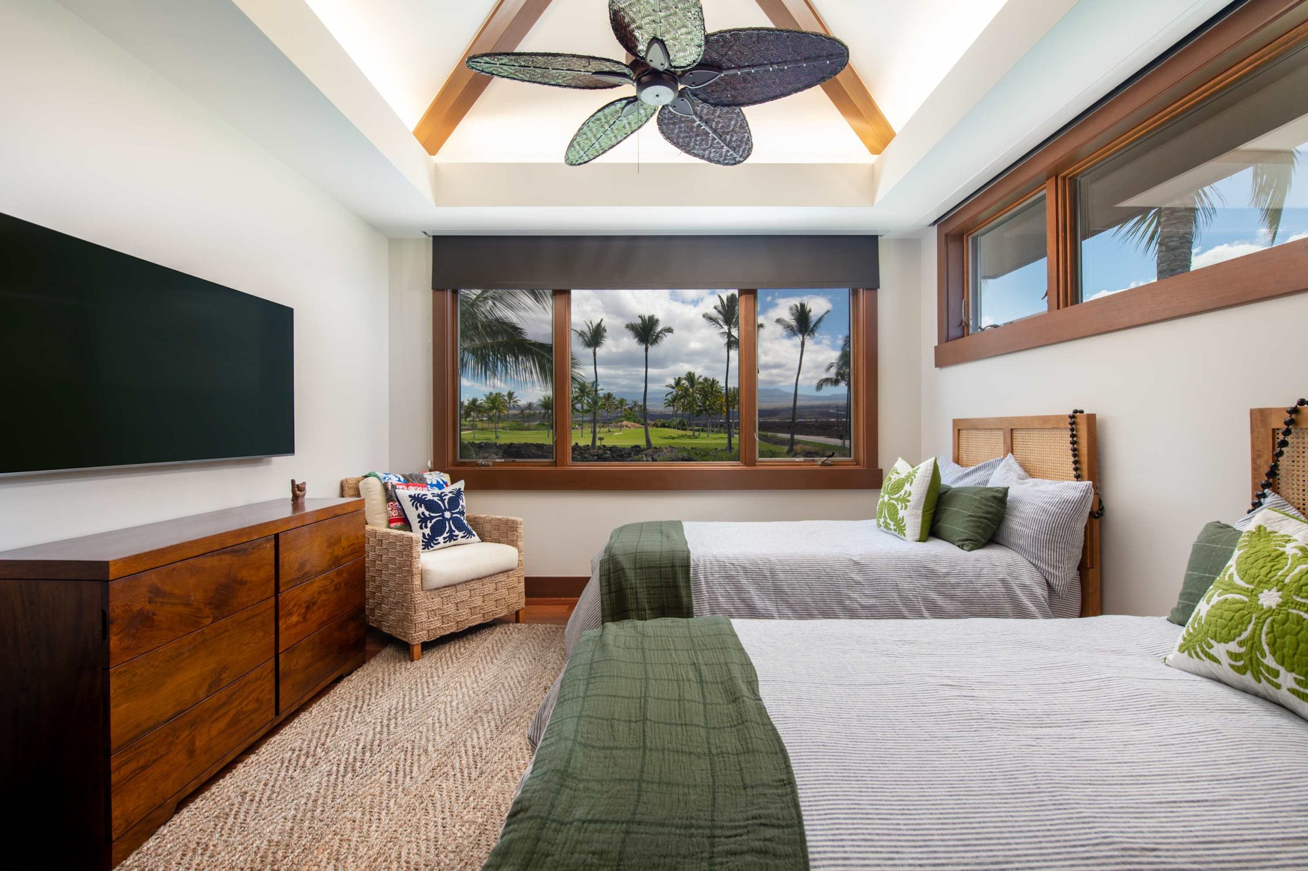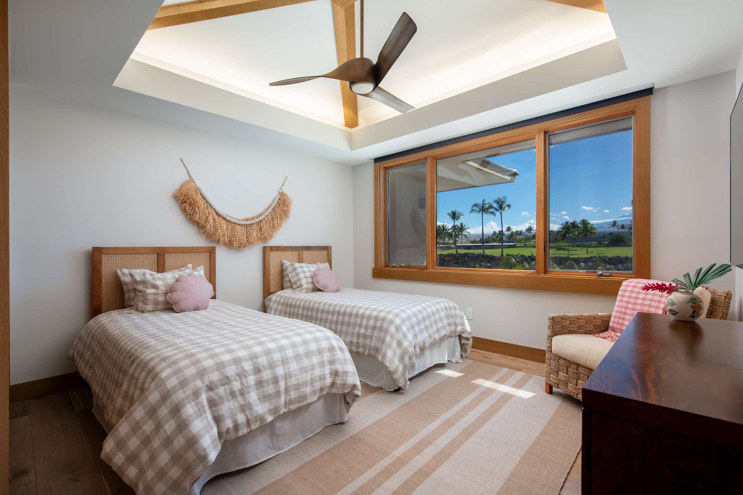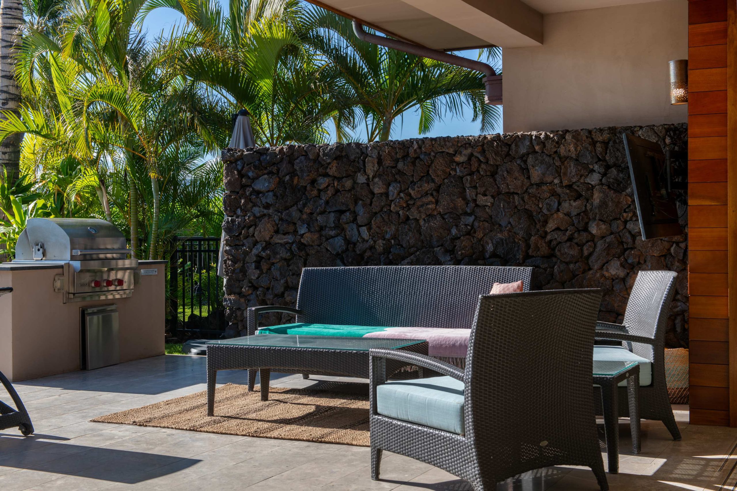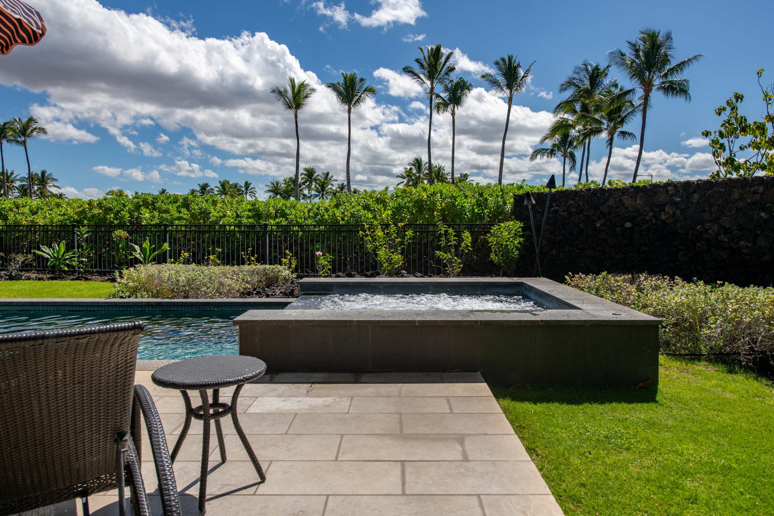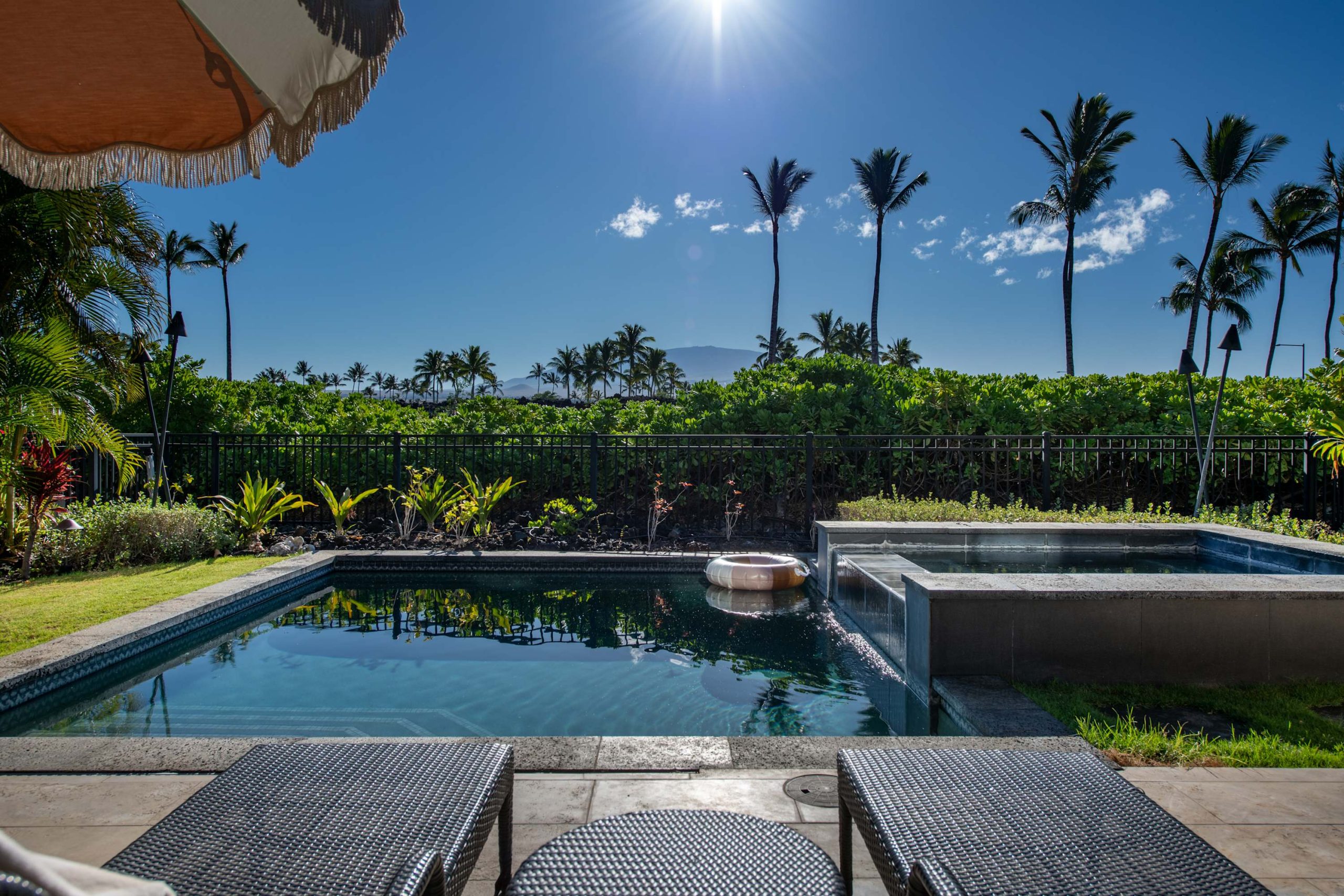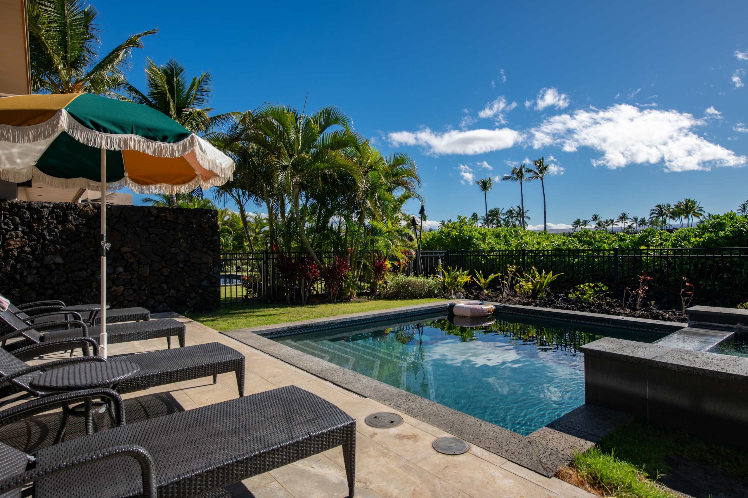Spend your days lounging at the beach club and enjoy one of the private cabanas free of charge. While relaxing, you can have your food and beverages delivered to you as you lounge. In the evening, take some time to unwind by your private pool or watch the sunset from the second floor lanai overlooking the surrounding mountains. Golf lovers can spend a day playing golf at The Francis I’I Brown South Course right in the home’s backyard.