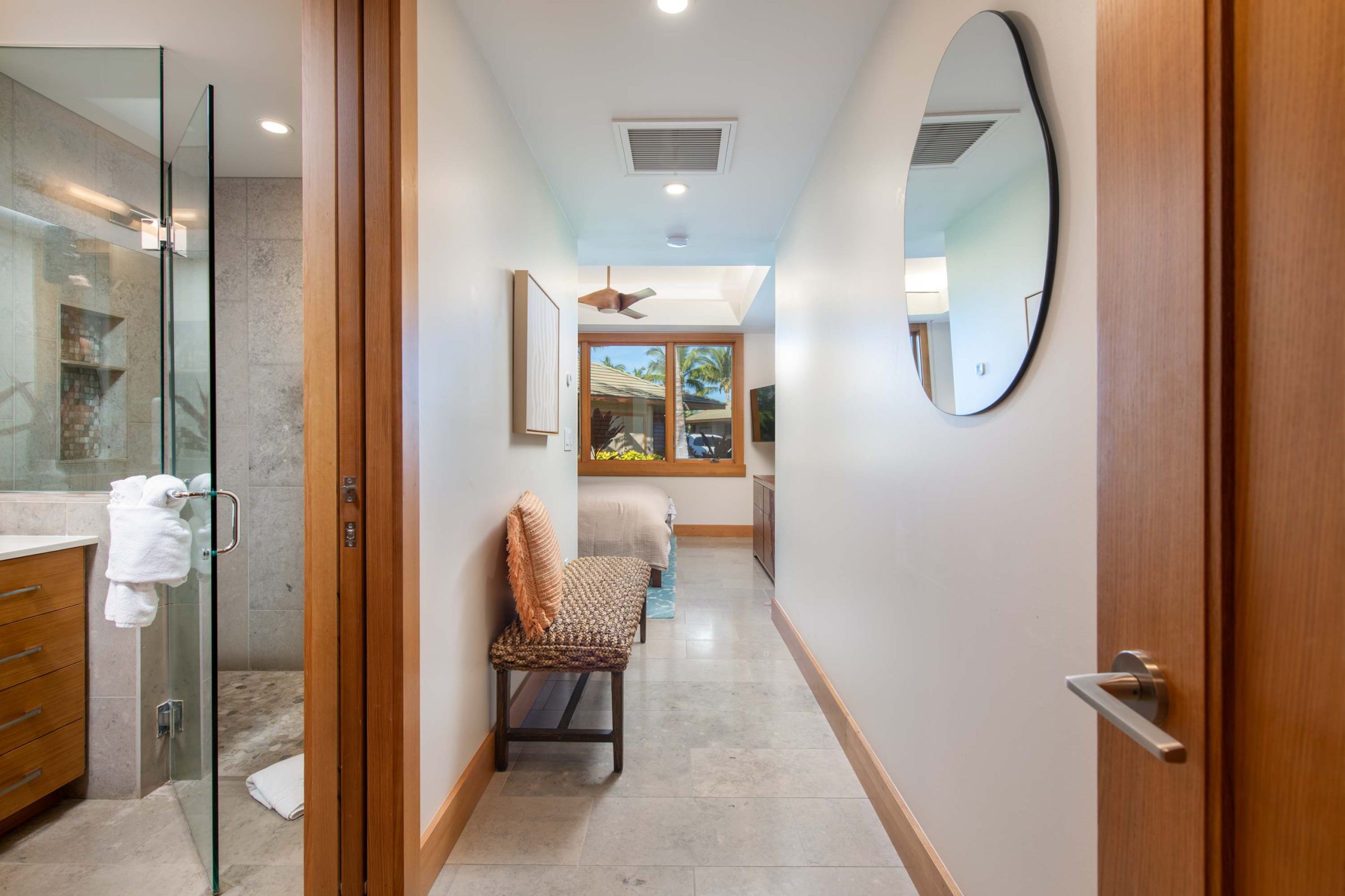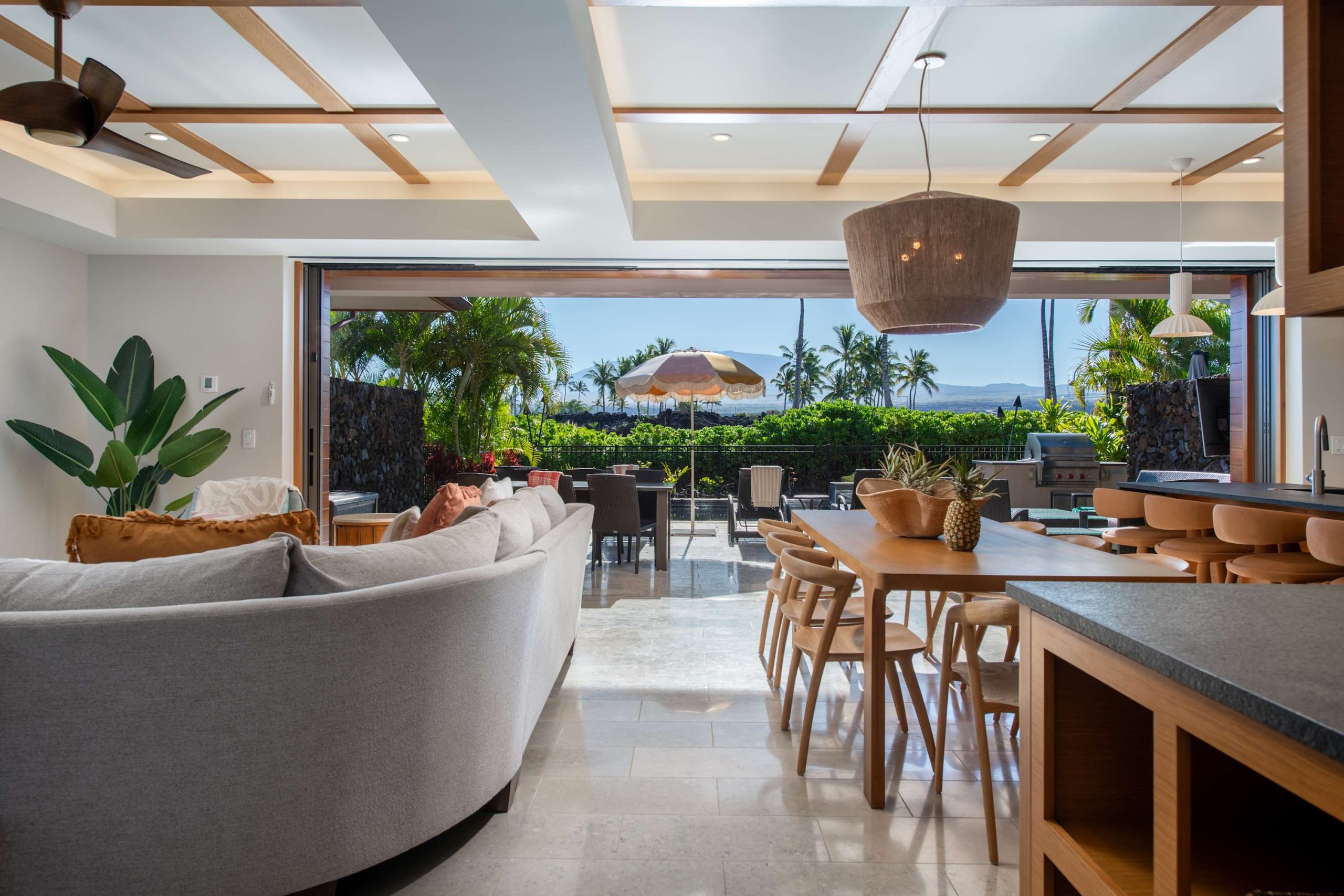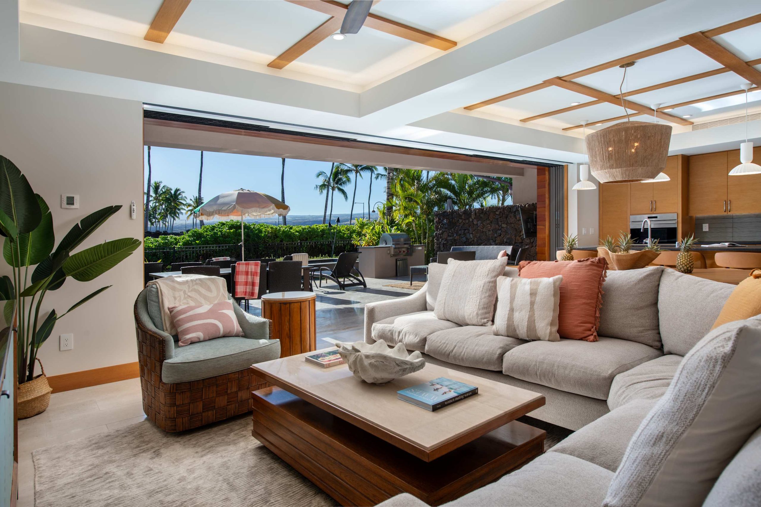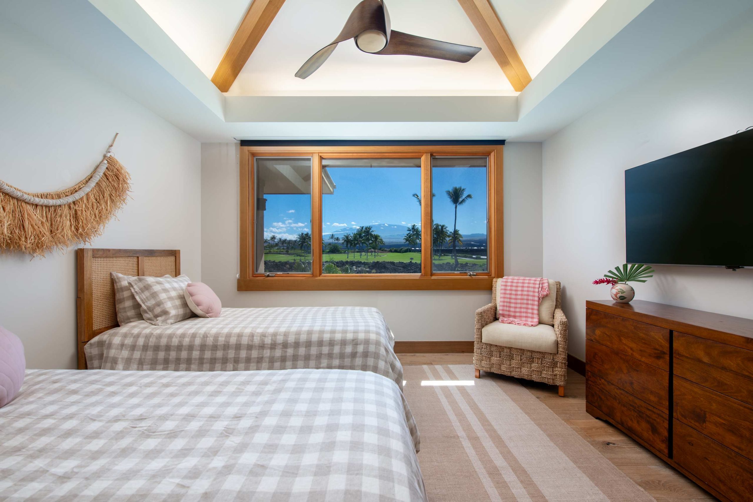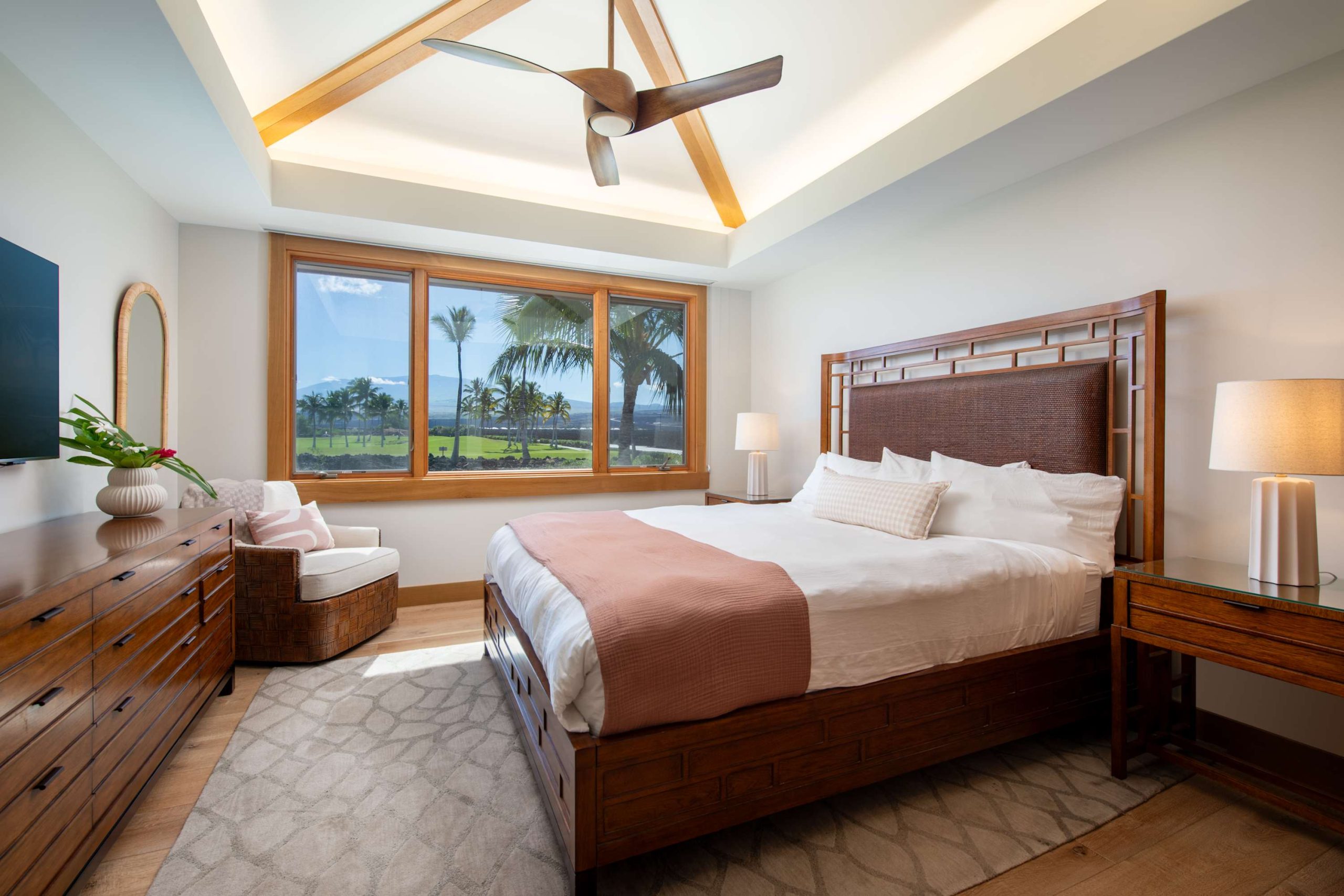 Spend your days lounging at the beach club and enjoy one of the private cabanas free of charge. While relaxing, you can have your food and beverages delivered to you as you lounge. In the evening, take some time to unwind by your private pool or watch the sunset from the second floor lanai overlooking the surrounding mountains. Golf lovers can spend a day playing golf at The Francis I’I Brown South Course right in the home’s backyard.