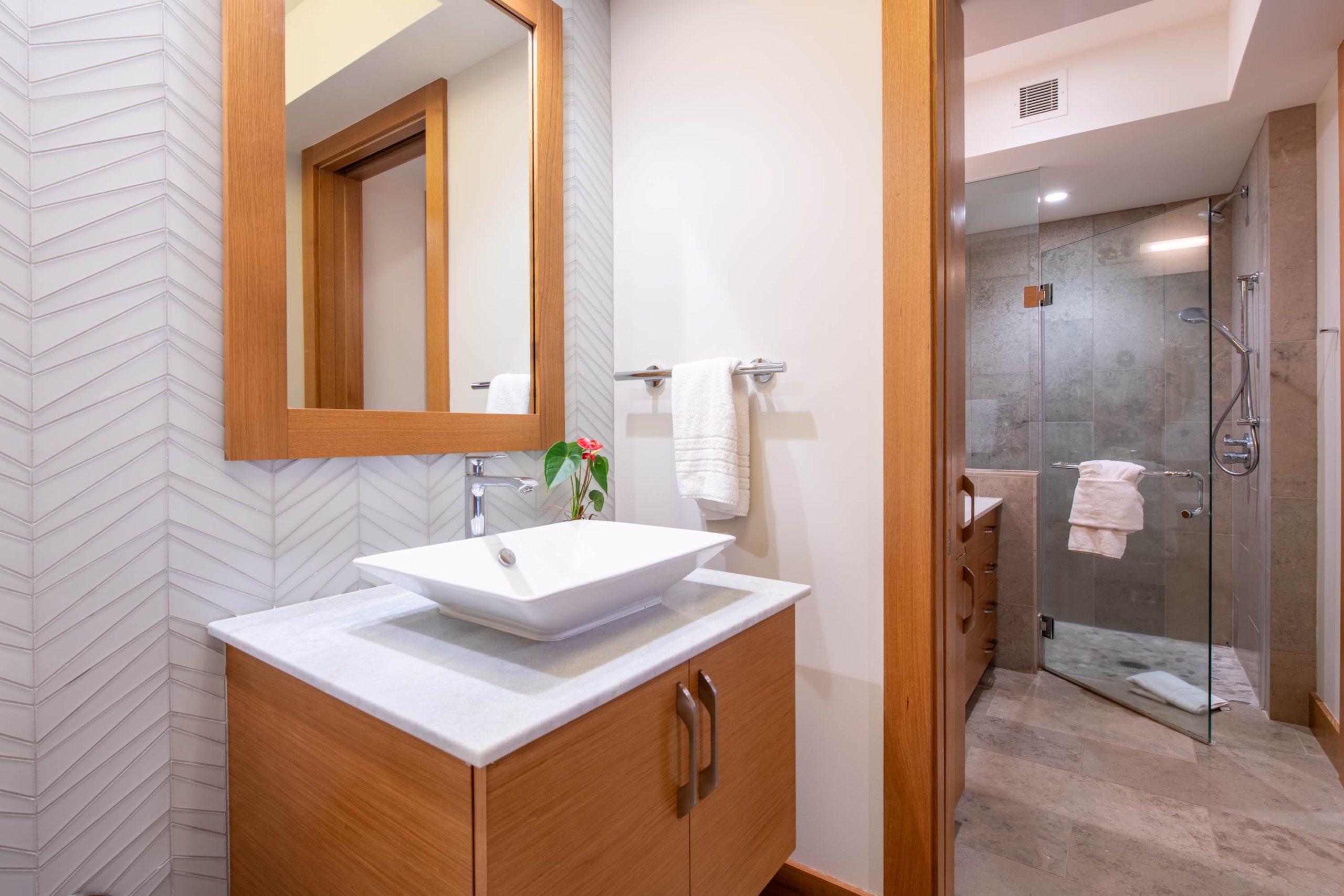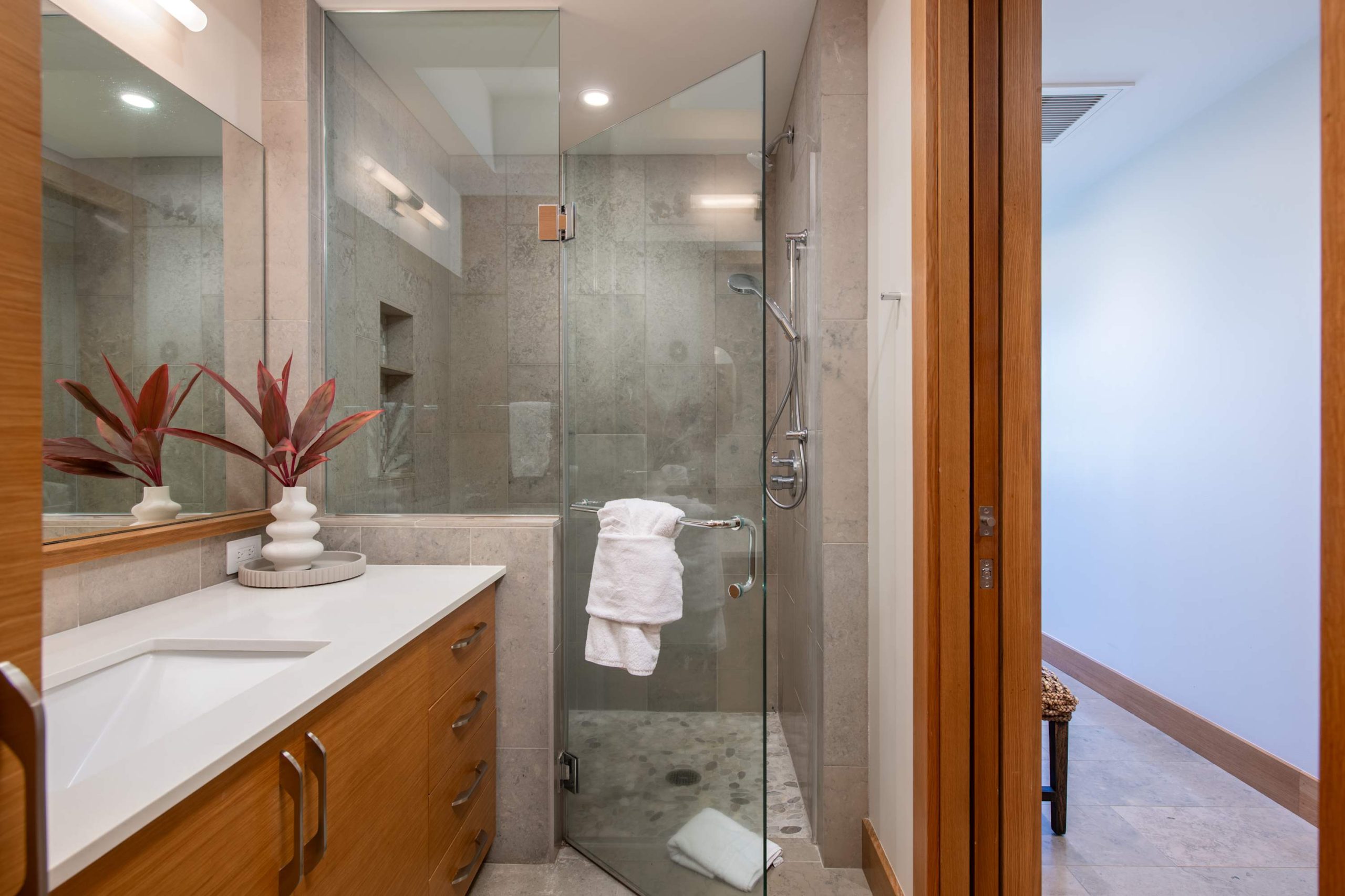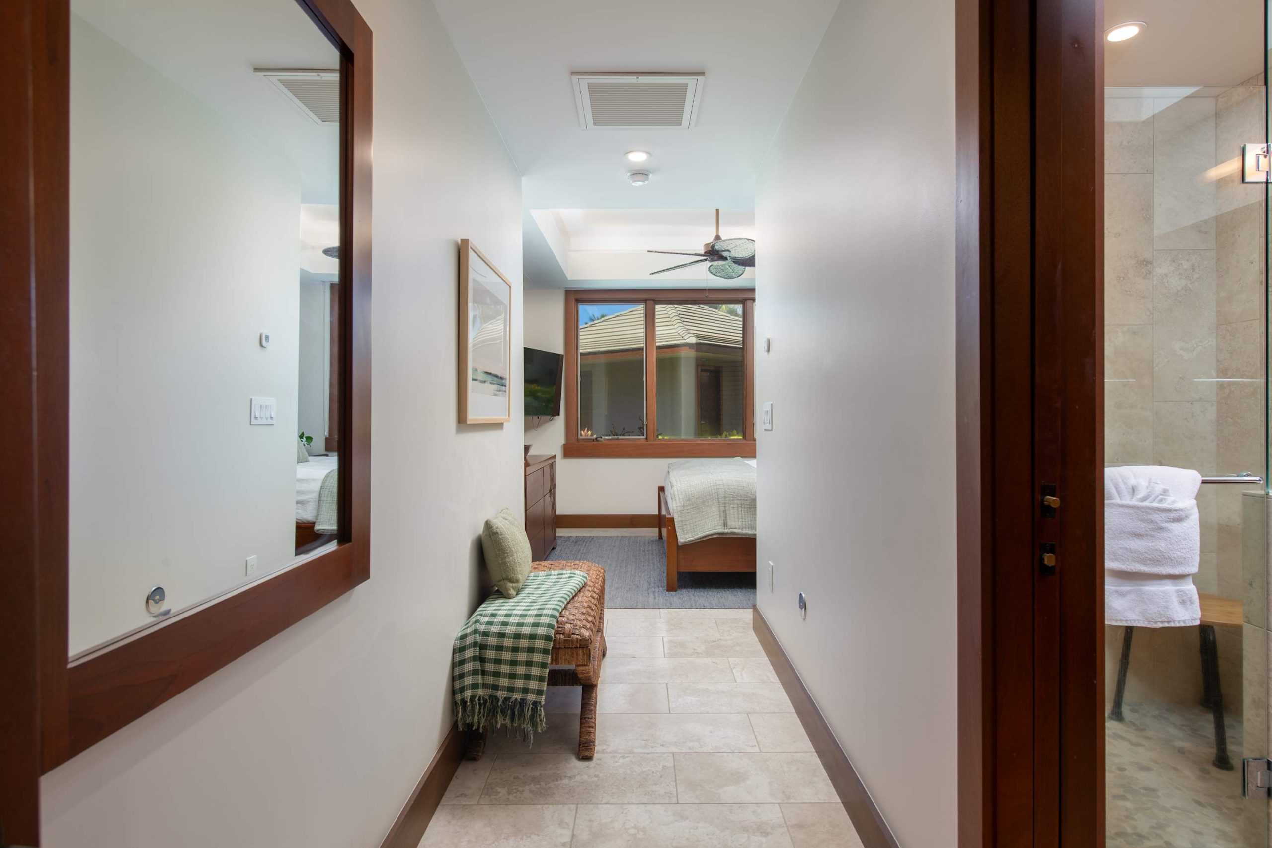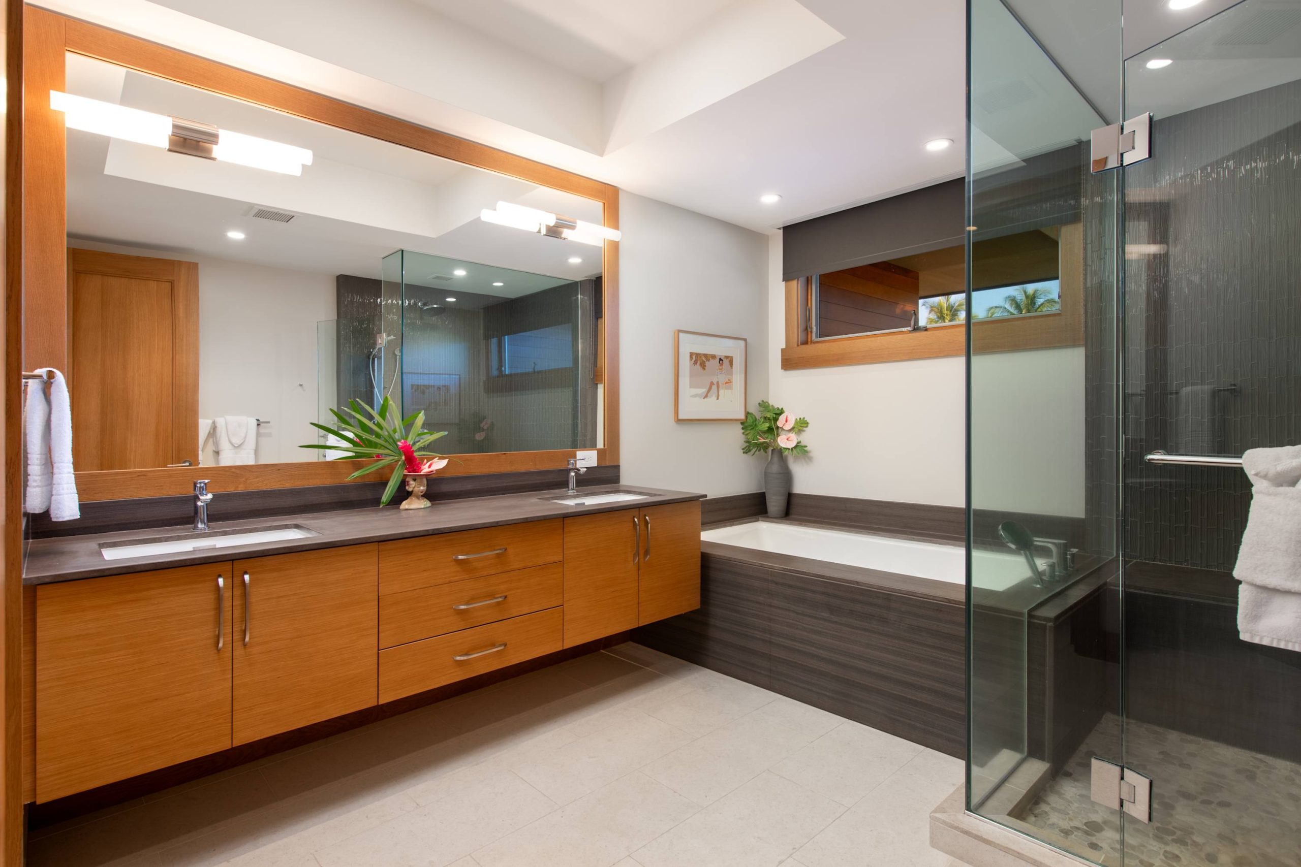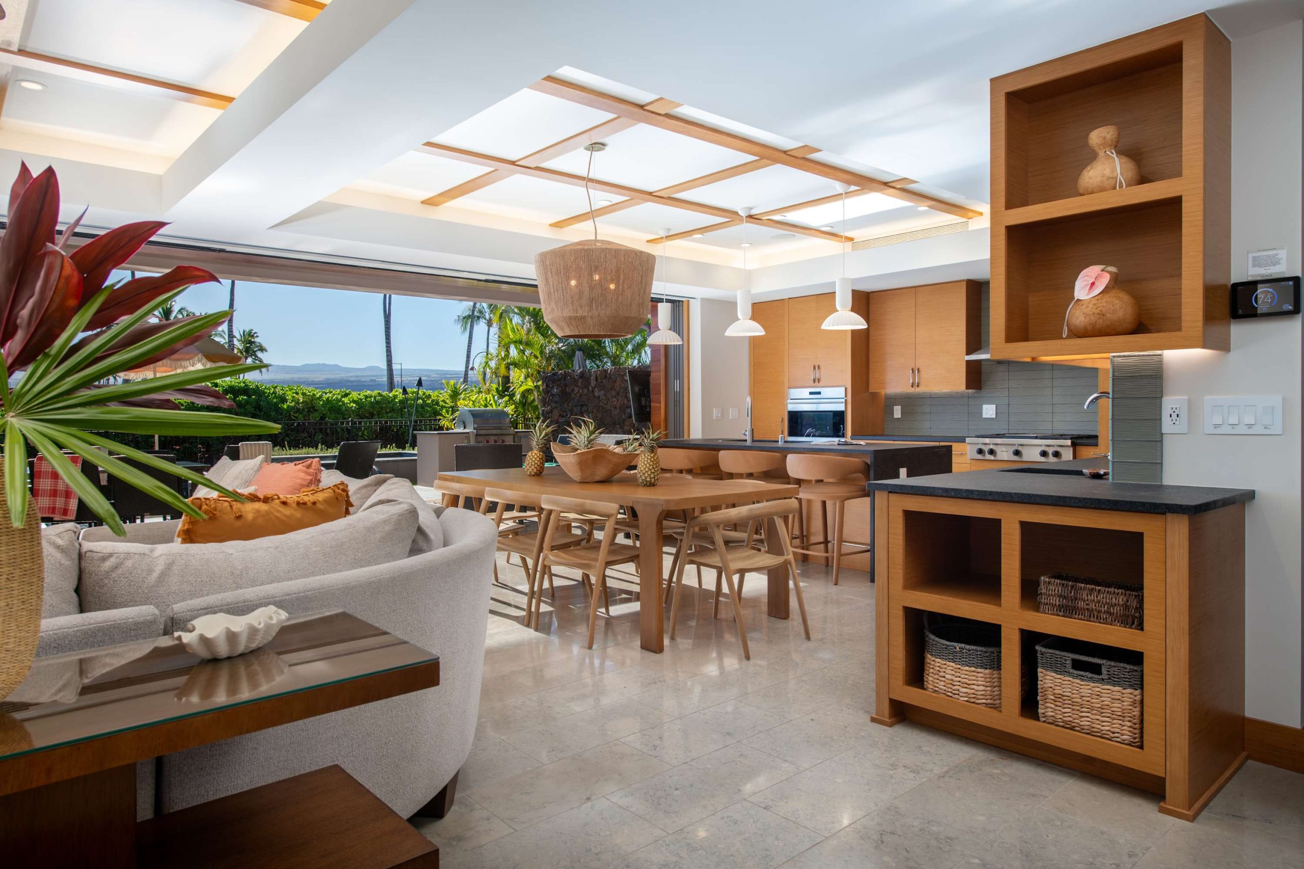 Spend your days lounging at the beach club and enjoy one of the private cabanas free of charge. While relaxing, you can have your food and beverages delivered to you as you lounge. In the evening, take some time to unwind by your private pool or watch the sunset from the second floor lanai overlooking the surrounding mountains. Golf lovers can spend a day playing golf at The Francis I’I Brown South Course right in the home’s backyard.
