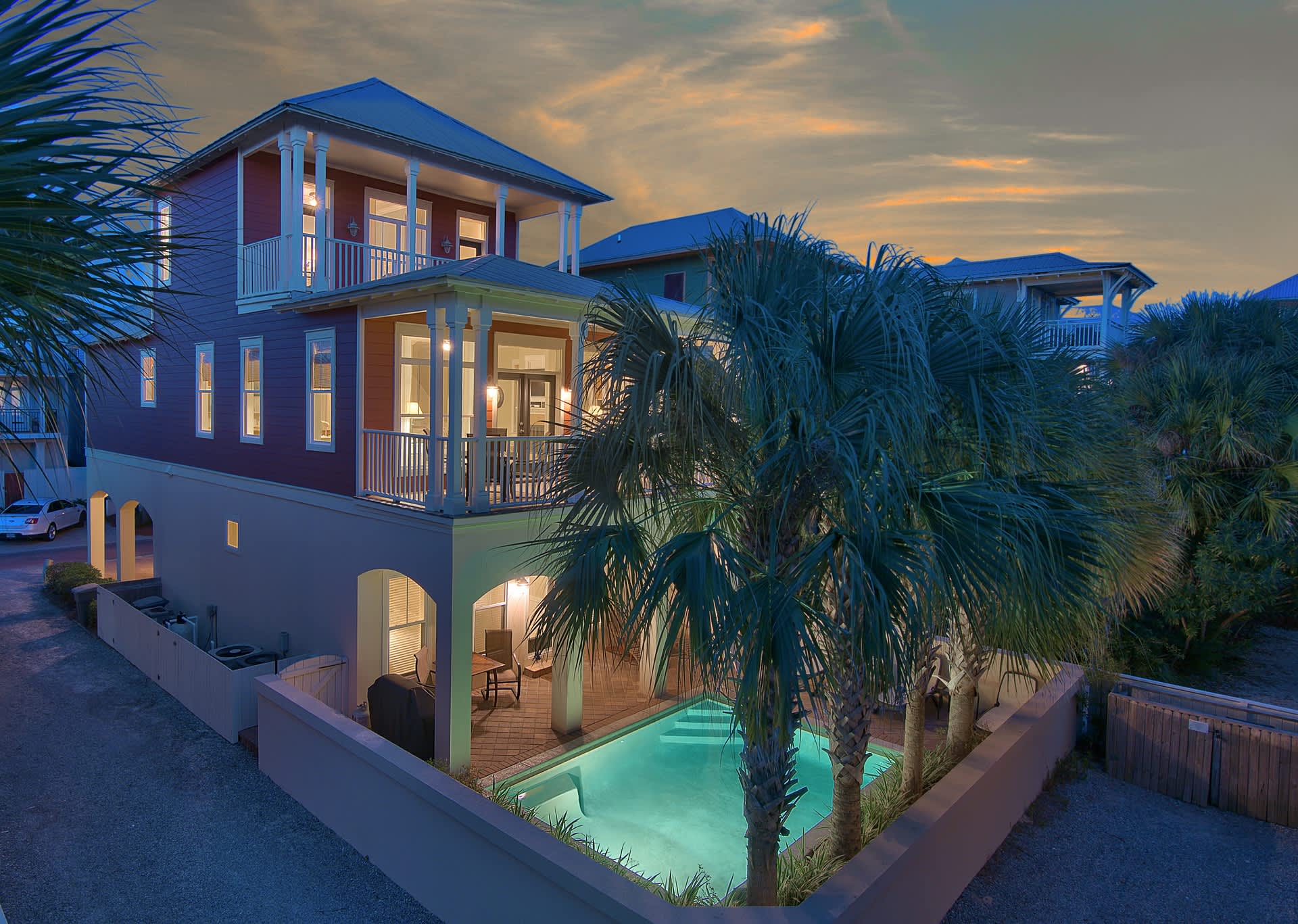 This 5 bedroom, 4 bath home can comfortably accommodate up to 12 people. Each rental includes a complimentary beach chair and umbrella setup to make your day on the sand as relaxing as possible. Bicycles are available for scenic rides down highway 30A to the town’s many shops and restaurants. The home features a private, heated pool, a fully equipped kitchen, a BBQ, balconies and decks on each floor, a spacious living area, full bath amenities, and everything you need to enjoy a wonderful stay.
