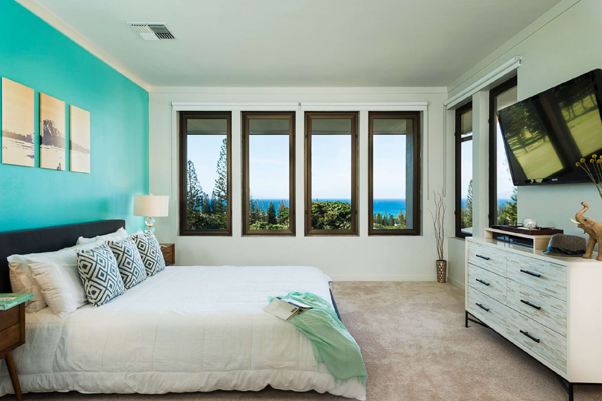 This renovated 2,300 square foot, 3-bedroom residence is located in the Kapalua Golf Villa community. It offers a chef’s kitchen boasting stainless steel appliances and quartz countertops. The tastefully appointed bedrooms will make you feel right at home. Not to mention the luxury bathrooms equipped with walk-in rain showers.